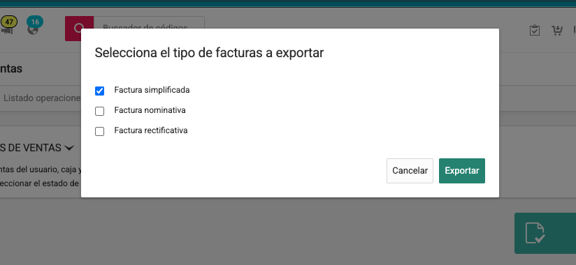 Cuando pulsemos ese botón saldrá una ventana de opción para elegir el tipo de factura que queremos descargar :
